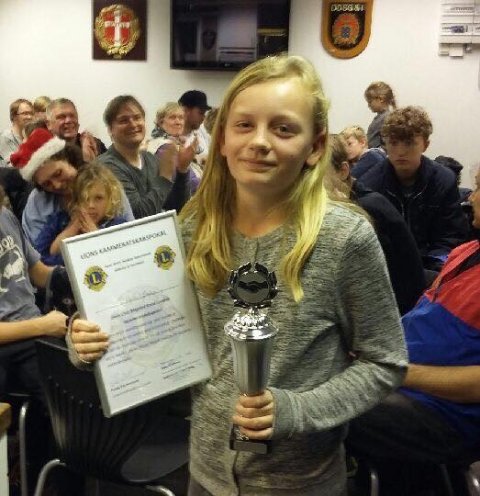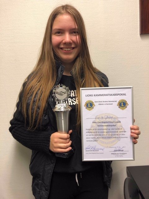 Blev udvalgt som årets kammerat, fordi hun både inde og uden for skydebanen har vist hjælpsomhed, godt humør og så er hun en god kammerat for de andre skytter.